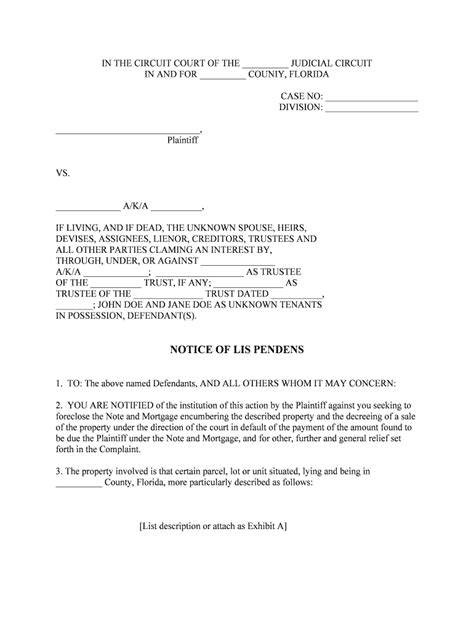 Florida Lis Pendens Form. In general, every document filed in a florida (court proceeding) (must be served) (on each party.). You are notified of the following: